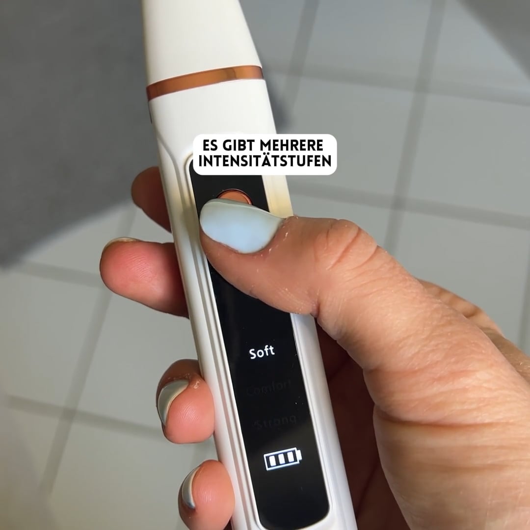 Ja, der Zahnreiniger Pro bietet verschiedene Intensitätsstufen, darunter auch eine sanfte Option für empfindliche Zähne und Zahnfleisch.